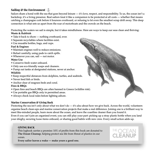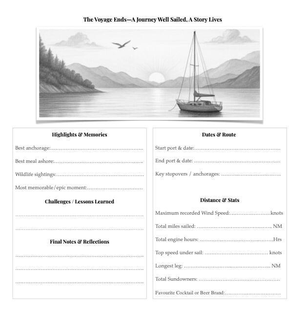 the heart of Charter Buddy. Space to record every anchorage, wind, meal, and moment from your voyage. With enough entries to capture your entire holiday, it becomes more than a record — a keepsake of sunsets, laughter, and lessons learned under sail, ready to revisit for years to come.